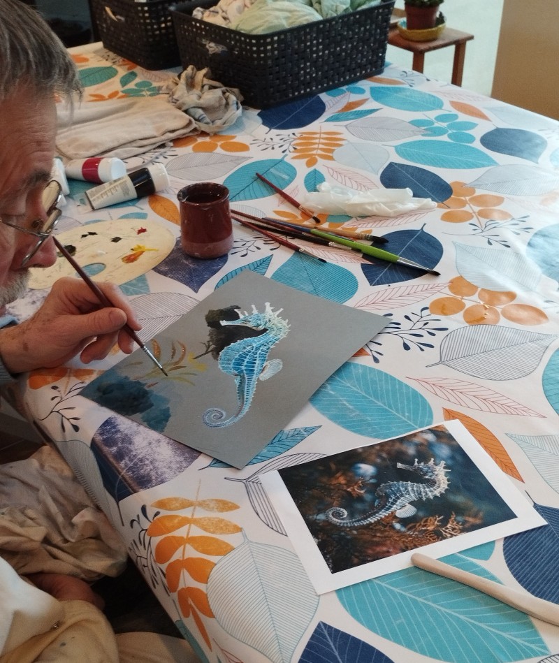 Franck, Christiane, Yannick et Jean-Luc font des stages ou suivent des cours de peinture.