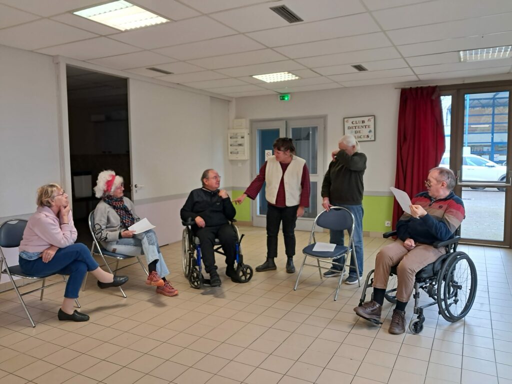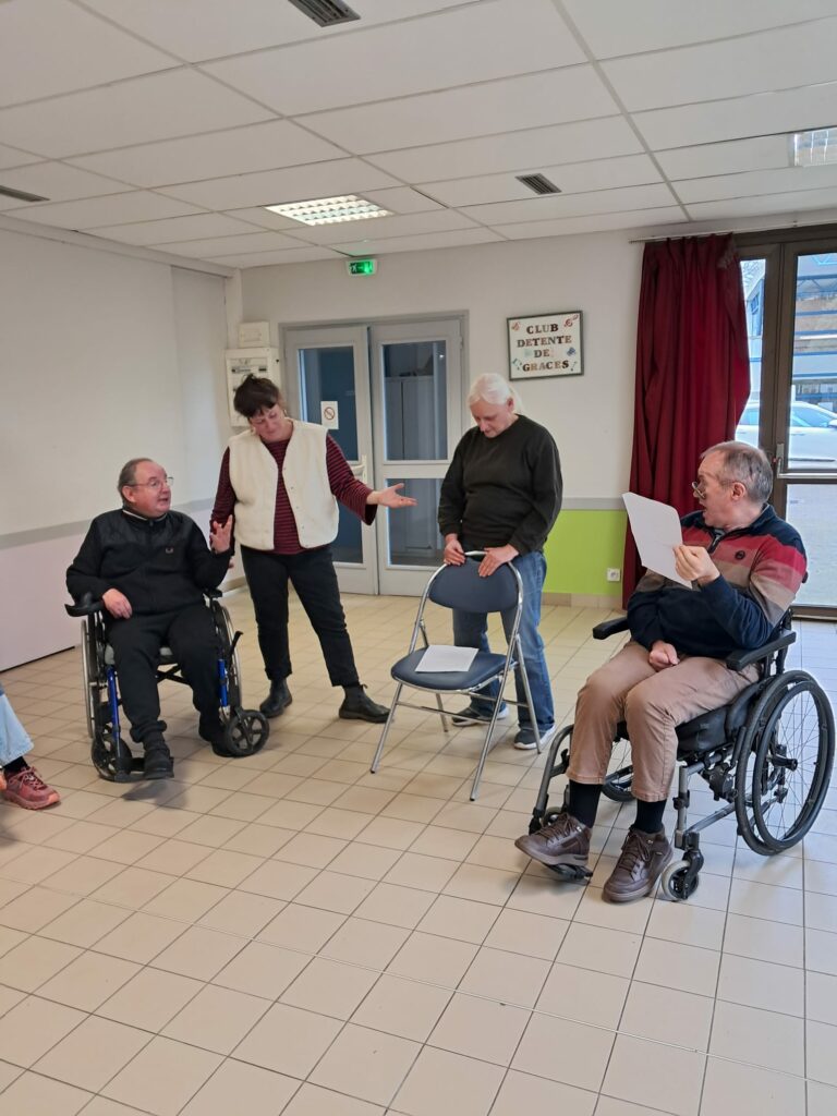L’expression théâtrale avec Fabienne Lallain mobilise quelques personnes de l’association.